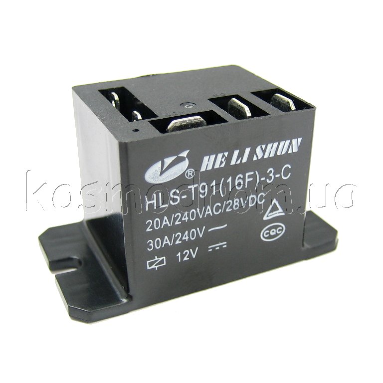 | HLS-T91-16F-3-12VDC-30A Реле электромеханическое напряжение 12 В. - Тип контактов 1 С - параметры контактов 30A 250VAC/30VDC - 20A/10A 240VAC/28VDC, Размер:32.5x27.5x28мм