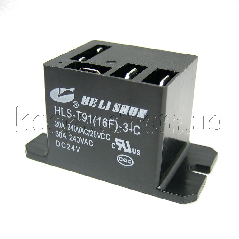 | HLS-T91-16F-3-24VDC-30A Реле электромеханическое напряжение 24 В. - Тип контактов 1 С - параметры контактов 30A 250VAC/30VDC - 20A/10A 240VAC/28VDC, Размер:32.5x27.5x28мм