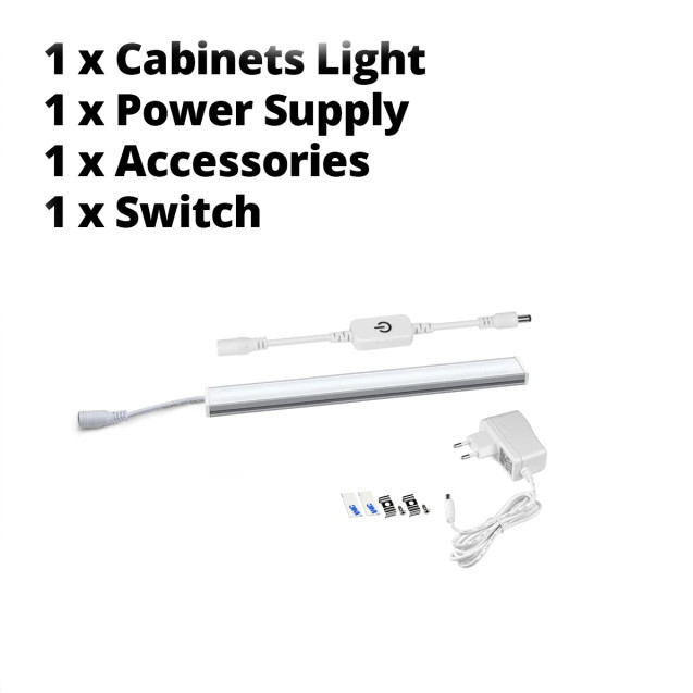 1xLamp-Touch-White-30 Светодиодные линейки для подсветки интерьера Набор для подсветки: одна лампа + источник питания, сенсорное включение (регулировка яркости), холодный-белый, 30 см