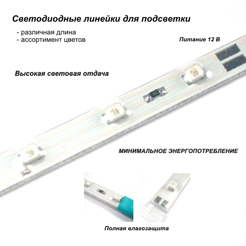 Lamp-NoPower-White-30 Светодиодные линейки для подсветки интерьера Лампа светодиодная, питание 12В, длина 30 см, белый-холодный