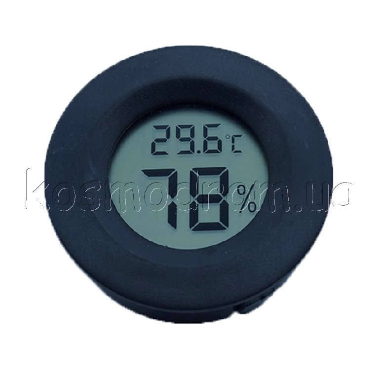 | ROUND-Thermometr-Hygrometer-BLACK Термометр, гигрометр, влагомер Цифровой измеритель температуры и влажности. Диапазон измерения температур: -50...+70 С., влажности 10...99 %. LCD дисплей, круглый корпус, черный. БЕЗ БАТАРЕЙКИ