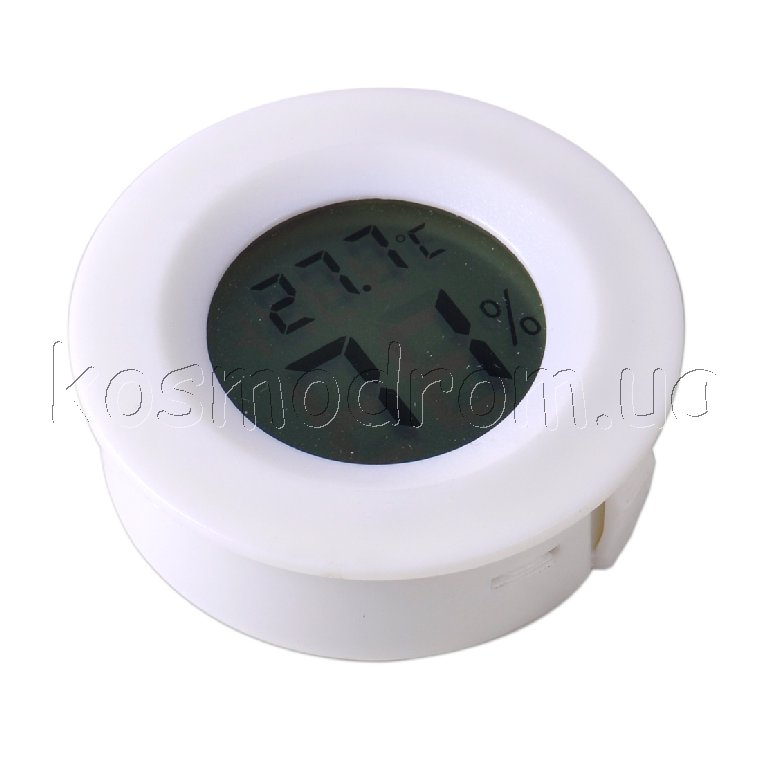 | ROUND-Thermometr-Hygrometer-WHITE Термометр, гигрометр, влагомер Цифровой измеритель температуры и влажности. Диапазон измерения температур: -50...+70 С., влажности 10...99 %. LCD дисплей, круглый корпус, белый. БЕЗ БАТАРЕЙКИ