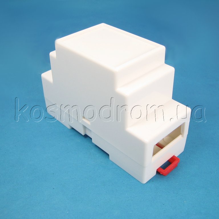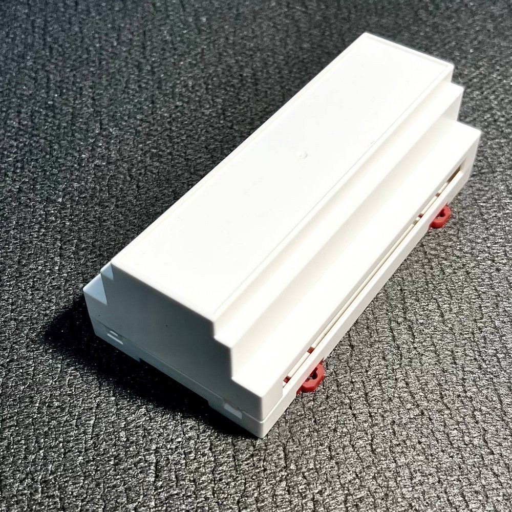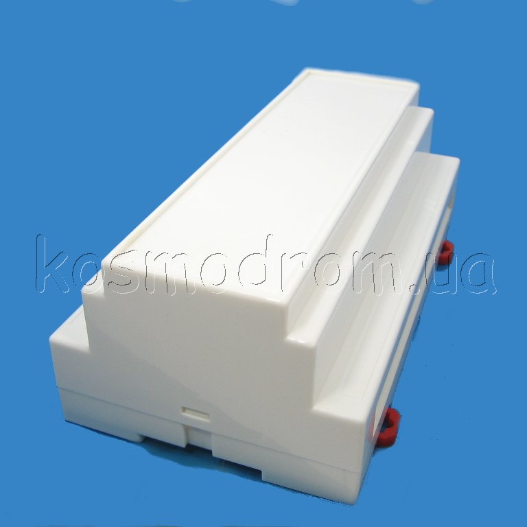корпус на DIN рейку белого цвета, из ABS пластика. Габаритные размеры составляют: по длине 88 мм, по ширине 180 мм и по высоте 59 мм.