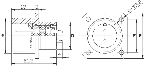 | KP2G22-K4P Разъемы KP2G кабельная розетка, контактов 4, серебро, 250В. 3А., IP65, -55 +100 С, отверстие под кабель 11 мм.