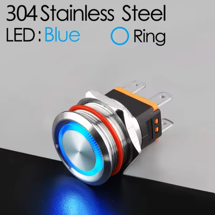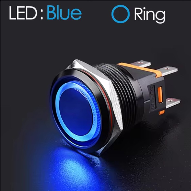 | LB22C-P20F/EB9-24V/S(L) Кнопка антивандальная D=22mm, 2NO, плоская, нормально открытая, БЕЗ ФИКСАЦИИ, круговая LED BLUE(синий), High-Current, MAX: 15A/250VAC
