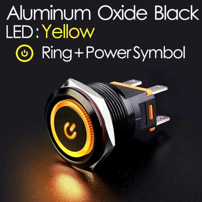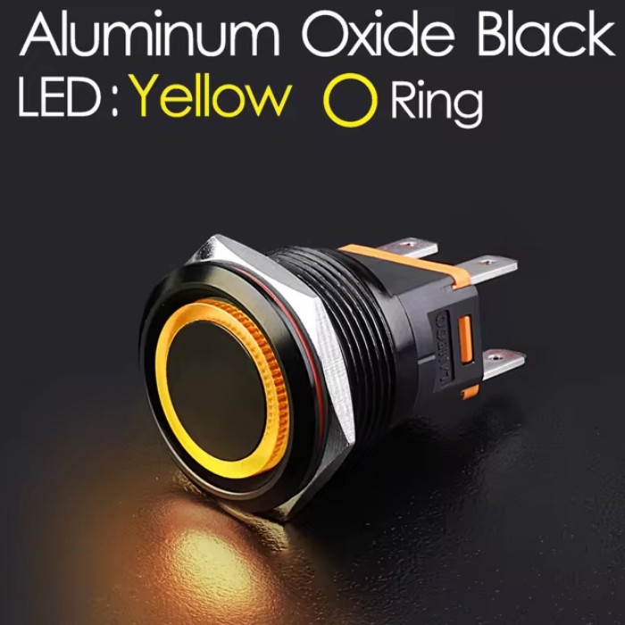 | LB22C-P20Z/EDYY9-24V/A(L) Кнопка антивандальная D=22mm, 2NO, Aluminum oxide BLACK плоская, нормально открытая, С ФИКСАЦИИ, круговая+символ ON/OFF LED YELLOW(желтый), High-Current, MAX: 15A/250VAC