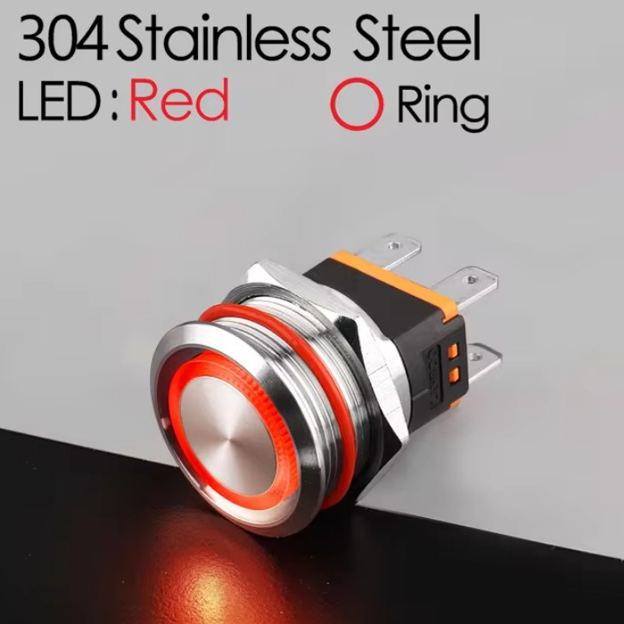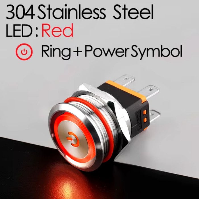 | LB22C-P20Z/EDYR9-24V/S(L) Кнопка антивандальная D=22mm, 2NO, плоская, нормально открытая, С ФИКСАЦИИ, круговая+символ ON/OFF LED RED(красная), High-Current, MAX: 15A/250VAC
