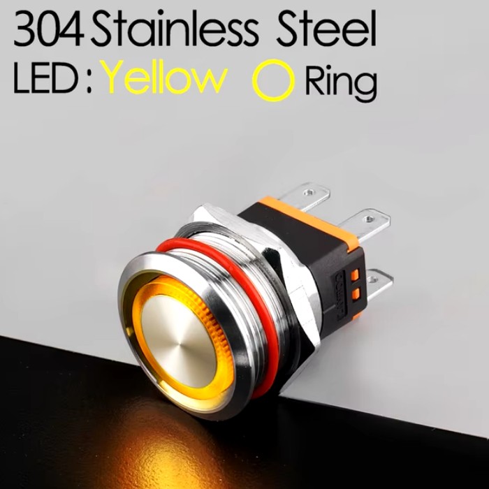 | LB22C-P20F/EY9-24V/S(L) Кнопка антивандальная D=22mm, 2NO, плоская, нормально открытая, БЕЗ ФИКСАЦИИ, круговая LED YELLOW(желтый), High-Current, MAX: 15A/250VAC