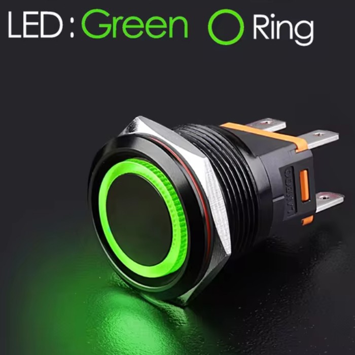 | LB22C-P20Z/EG9-24V/A(L) Кнопка антивандальная D=22mm, 2NO, Aluminum oxide BLACK плоская, нормально открытая, С ФИКСАЦИИ, круговая LED GREEN(зеленый), High-Current, MAX: 15A/250VAC
