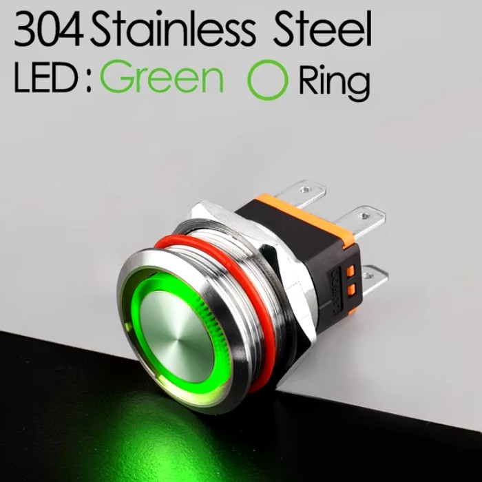 | LB22C-P20Z/EG9-24V/S(L) Кнопка антивандальная D=22mm, 2NO, плоская, нормально открытая, С ФИКСАЦИИ, круговая LED GREEN(зеленый), High-Current, MAX: 15A/250VAC
