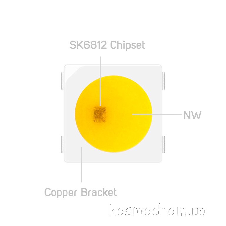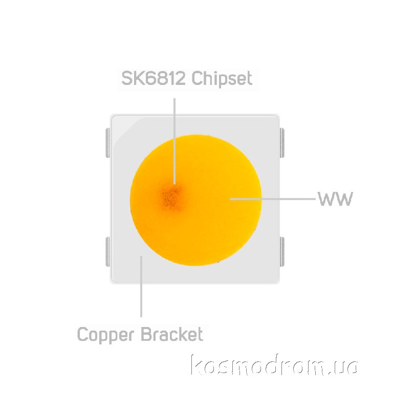 SK6812 Warm White Управляемый светодиод Программируемый светодиод со встроенным чипом. Белый теплый 2700-3000 Ккод товара: 00-00063375