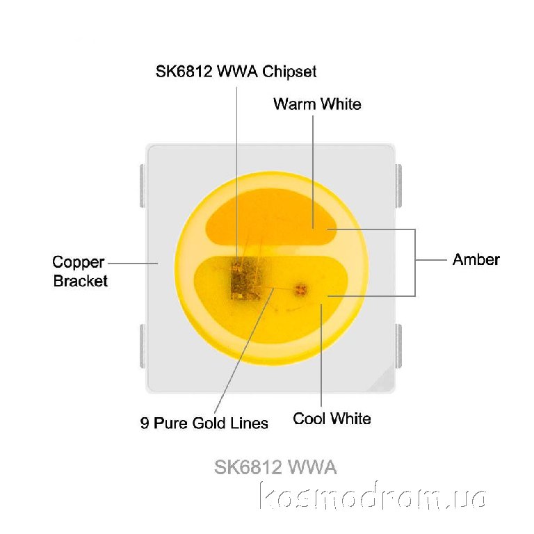 SK6812 WWA Управляемый светодиод Программируемый светодиод 5050 со встроенным чипом. Цвет свечения: белый холодный / белый теплый / янтарныйкод товара: 00-00063374