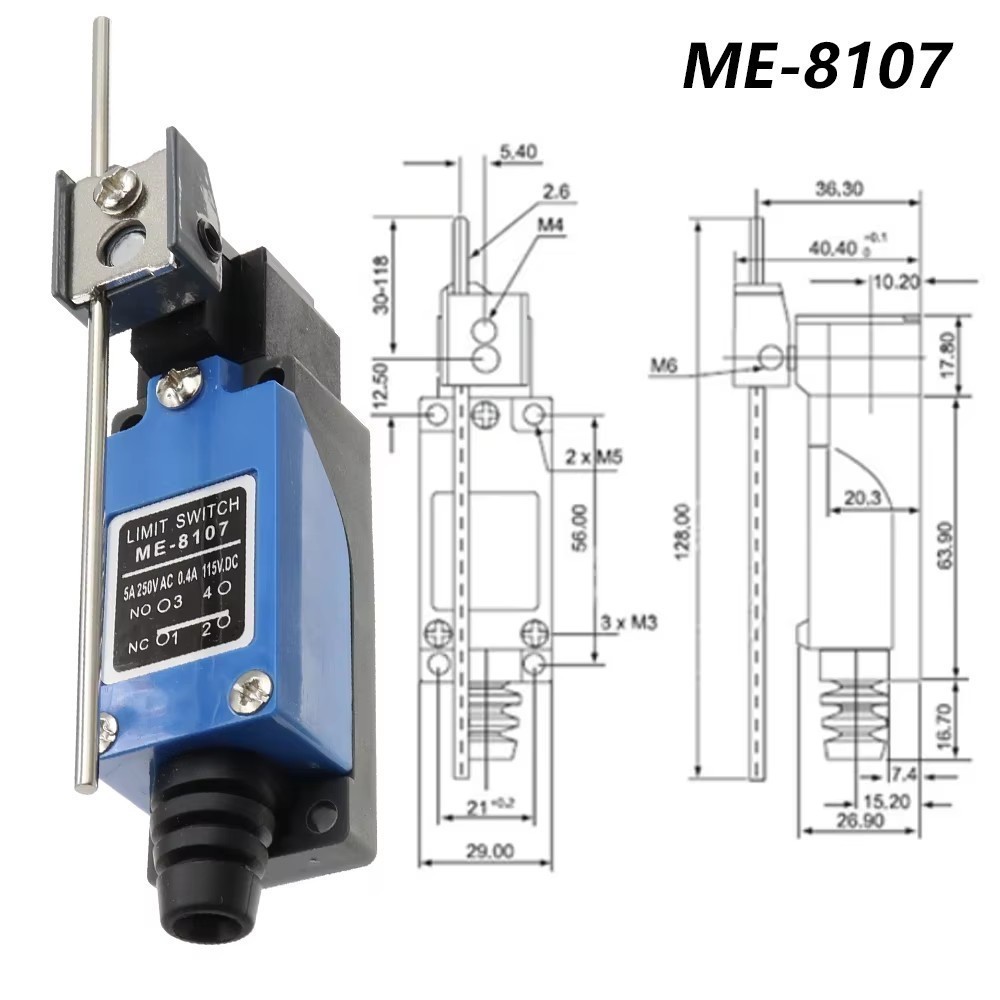 | ME-8108 Концевой выключатель NO NC, IP65, 250 В, 12,5 см х 2,8 см х 5 см