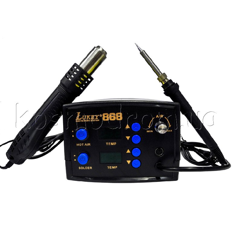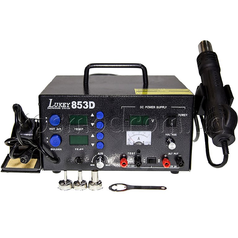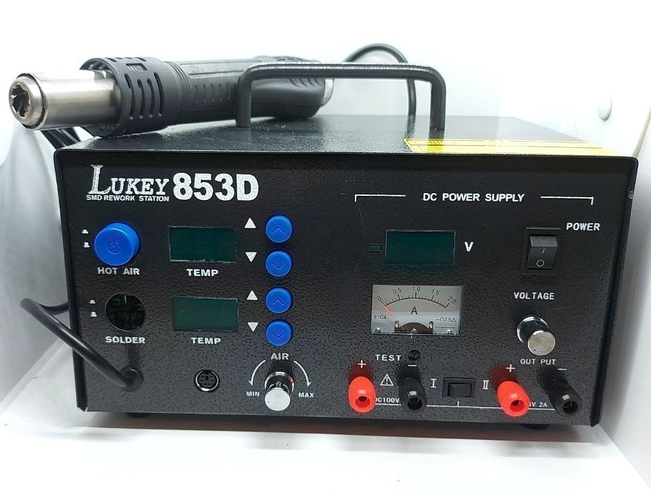 Термовоздушная паяльная станция Lukey 850A с ручной регулировкой рабочей температуры и потока воздуха.