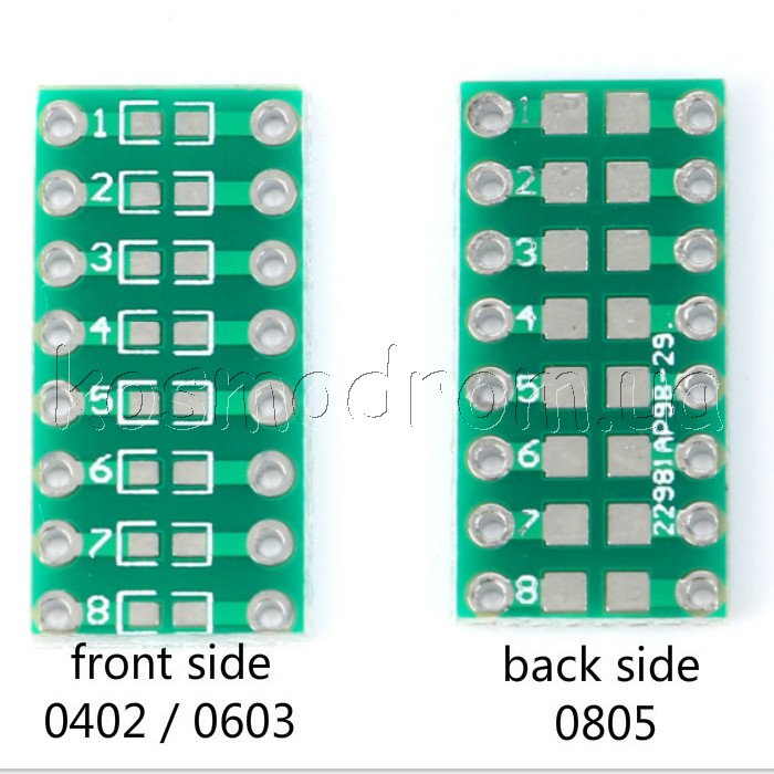 | MAKET-PCB-0402-0603-0805-DIP Макетная плата - адаптер Универсальная двухсторонняя макетная плата, переходник с корпусов 0402, 0603, 0805