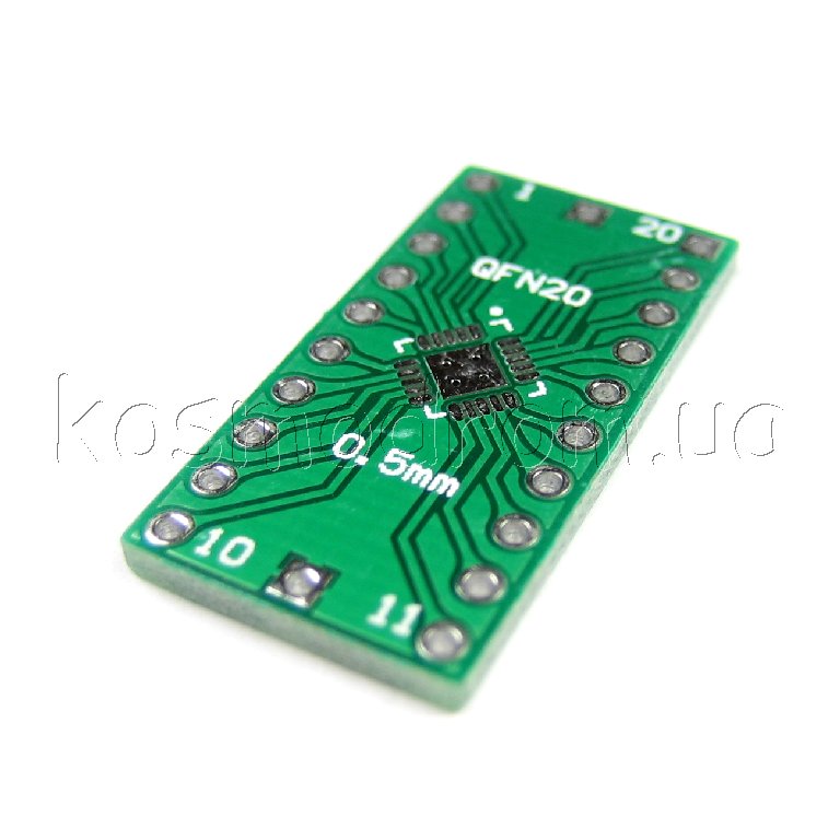 | MAKET-PCB-QFN20-DIP20 Макетная плата - адаптер Универсальная двухсторонняя макетная плата, переходник с корпусов QFN20 с шагом 0,5 и 0,65 мм. на DIP20