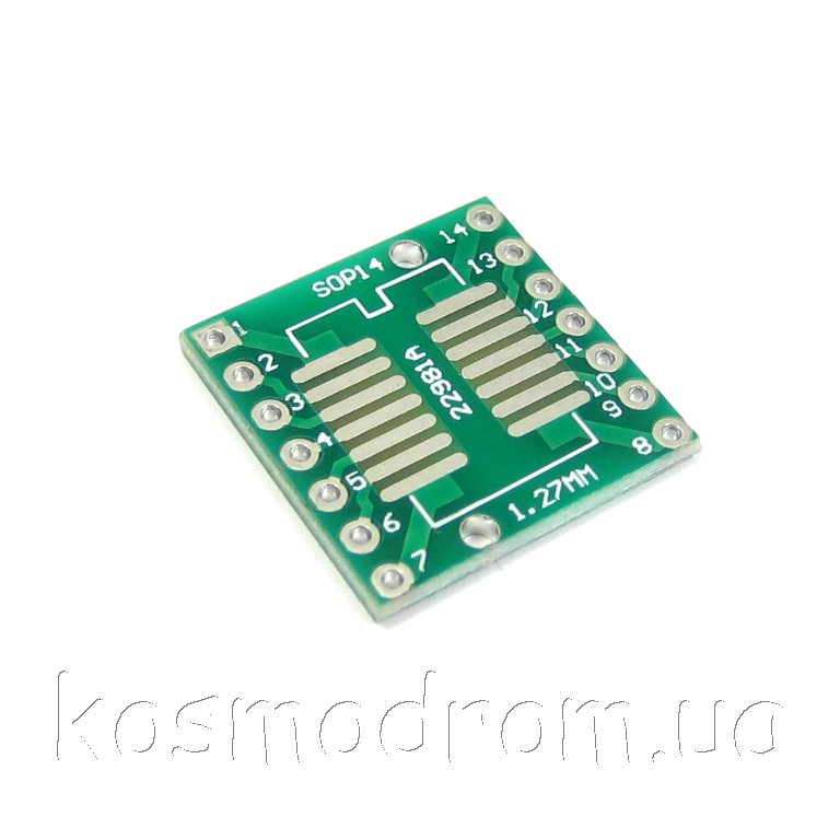 | MAKET-PCB-SO14xTSSOP14-DIP Макетная плата - адаптер Универсальная двухсторонняя макетная плата, переходник с корпусов SOIC14, SOP14, TSSSOP14, с шагом 0,65 и 1,27 мм. на DIP14