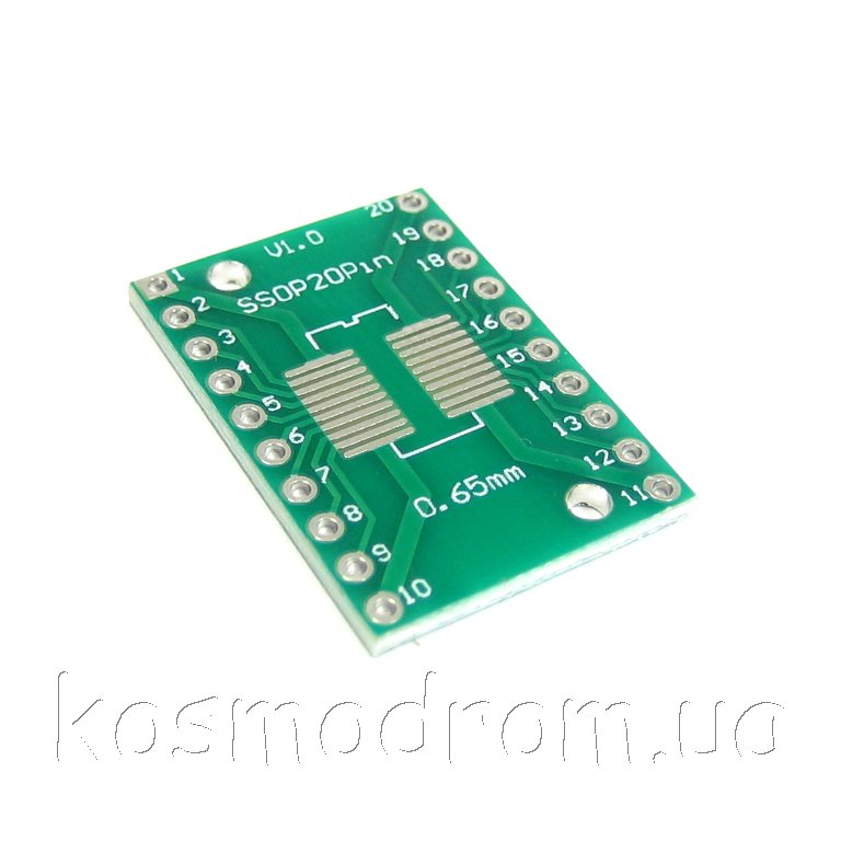 | MAKET-PCB-SO20xTSSOP20-DIP20 Макетная плата - адаптер Универсальная двухсторонняя макетная плата, переходник с корпусов SOIC20, SOP20, TSSSOP20, с шагом 0,65 и 1,27 мм. на DIP20