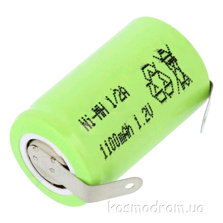 | ACCU-1/2A110/JJJBL Аккумулятор NiMh Аккум: Ni-MH, 1/2A, 1,2В, 1100мАч, плоские, под пайку