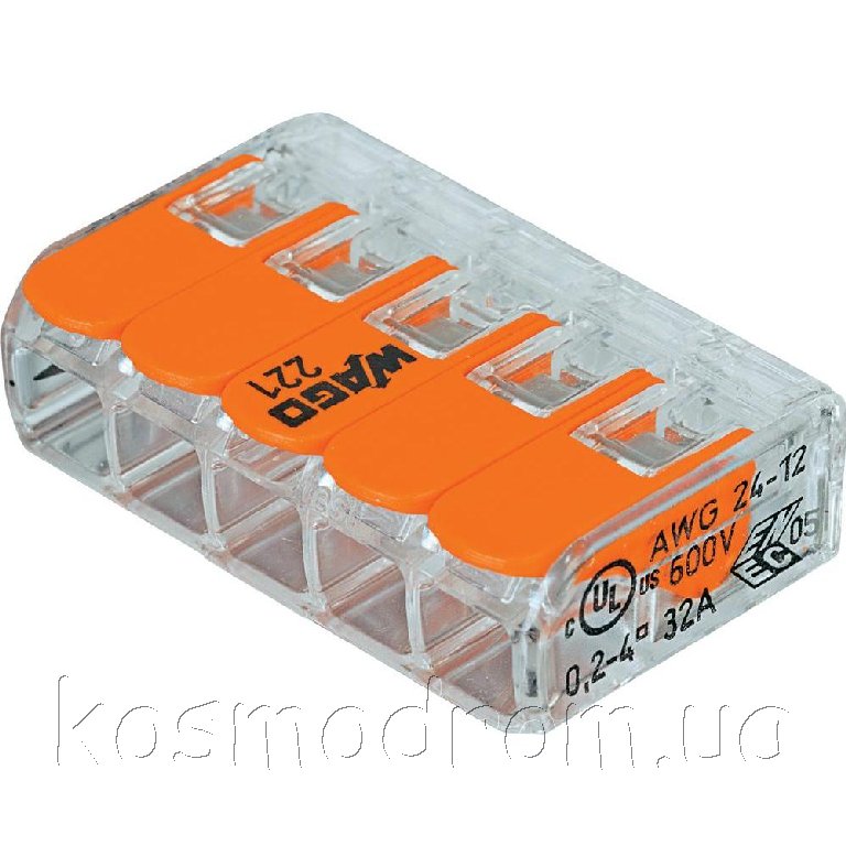 | 221-615 Клемма строительно-монтажная Быстрый соединитель, 221, 41А, 450В, на провод, 0,5...6mм2, клеммы: 5