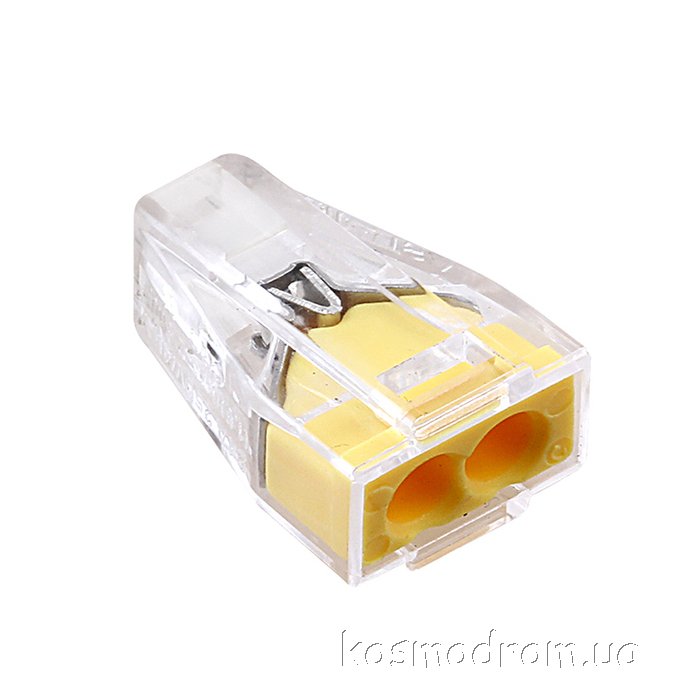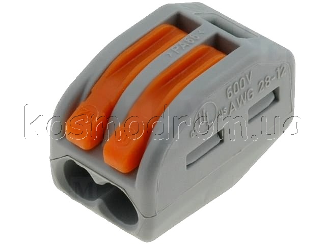 | 221-412 Клемма строительно-монтажная Соединитель: клеммник монтажный, самозажимная клемма, 0,2 - 4мм2. Количество клемм: 2