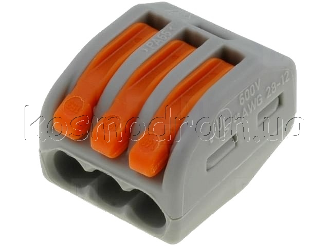 | 222-413 Клемма строительно-монтажная Клемма монтажная универсальная, 3 пров: 0,08 4 мм2 /32 А