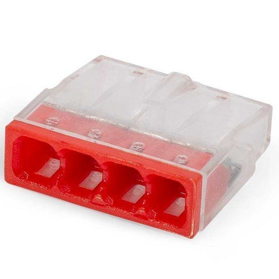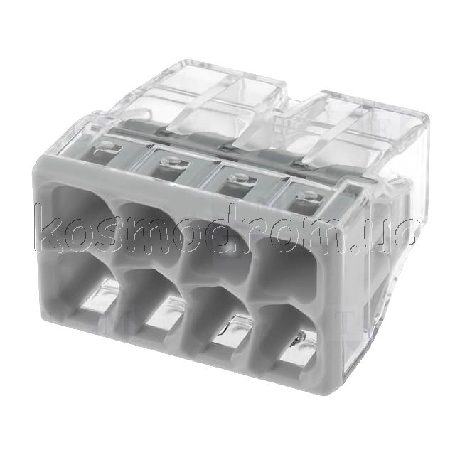 | 221-414 Клемма строительно-монтажная Соединитель: клеммник монтажный, самозажимная клемма, 0,2 - 4мм2. Количество клемм: 4