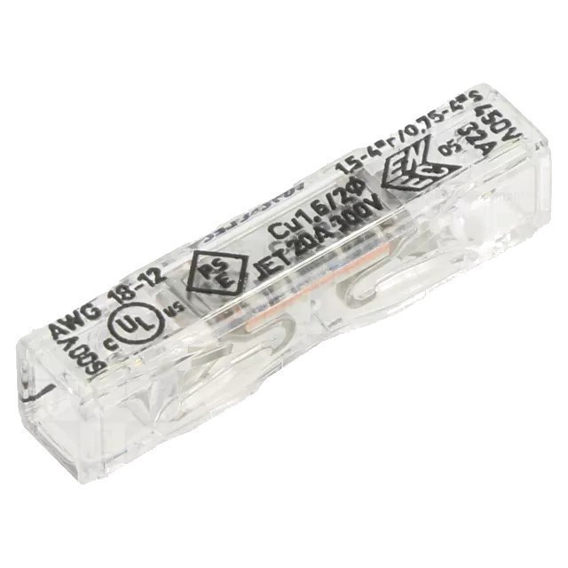 | 221-2401 Клемма строительно-монтажная Внутренний соединитель с рычагами, для всех типов проводников, 12 AWG (макс.): 2-проводник, прозрачный корпус, белая крышка: Температура окружающего воздуха: макс. 85°C (T85), 4.00 мм?: прозрачный