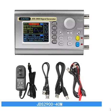 Двухканальный DDS генератор сигналов произвольной и стандартной формы. Форма: синусоидальная, прямоугольная, треугольная, импульсная, произвольные (60 форм) Диап. частот: от 0 Гц-40 МГц (для синуса)
