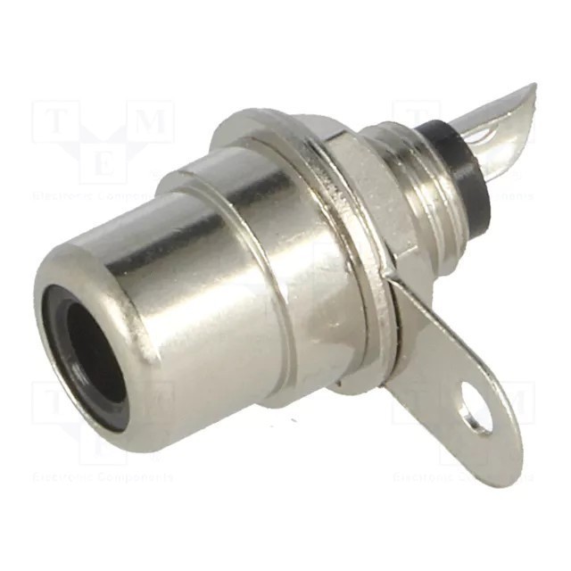 | RCA-107-N-B Разъем RCA RCA разъем (тюльпан) мама, для монтажа на панель, изолятор черный, контакты никелированные.