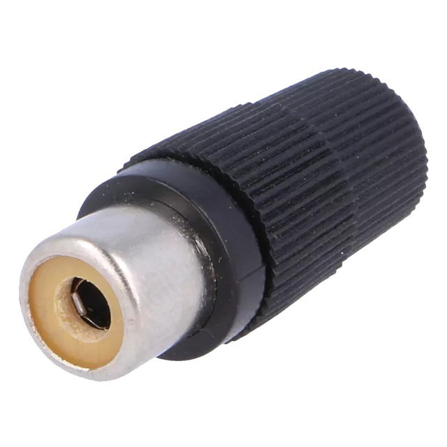 | RCA-PF03-G-B-6.5 Разъем RCA RCA разъем (тюльпан), мама, металлический корпус, цвет маркировки: черный, контакты позолоченные, диам. кабеля 6,5 мм.