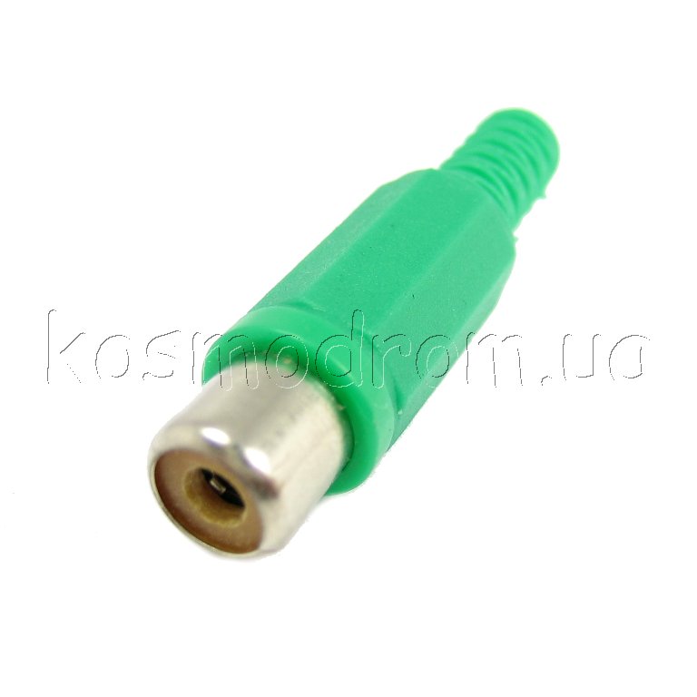 | RCA-PF01-N-G Разъем RCA RCA разъем (тюльпан), мама, пластиковый корпус, зеленый, контакты никелированные. Диам. кабеля 5 мм.
