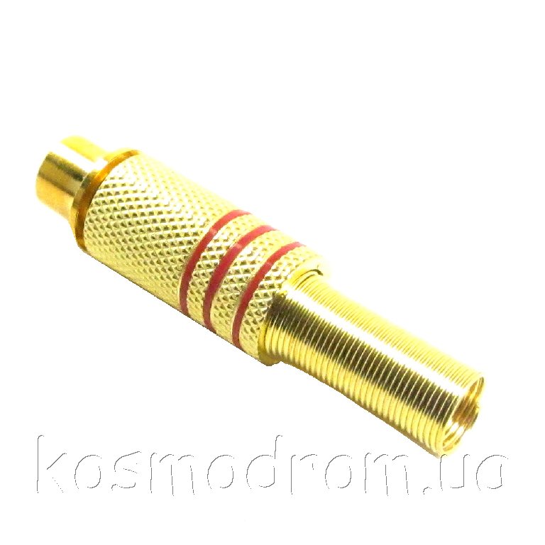 | CC-010R Разъем RCA "Вилка, RCA, ""папа"", с амортизатором, прямой, пайка, позолота, 5мм"