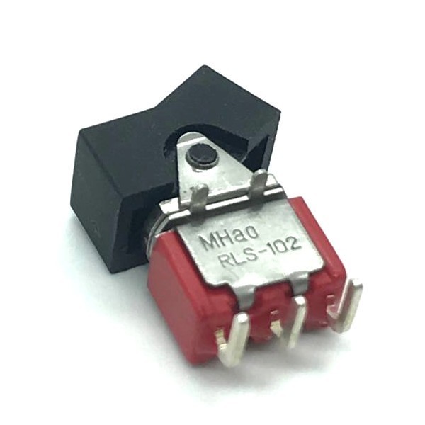 | RLS-102-A4 Тумблер Переключатель: тумблер, 5A 125VAC/2A 250VAC, выводы на печатную плату, угловые. Кол-во фиксированных положений: 2. ON-ON. Контактов: 3