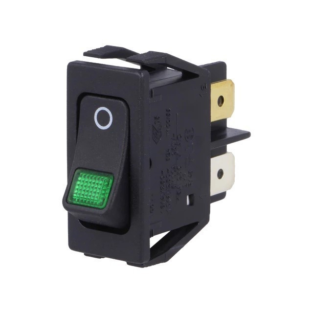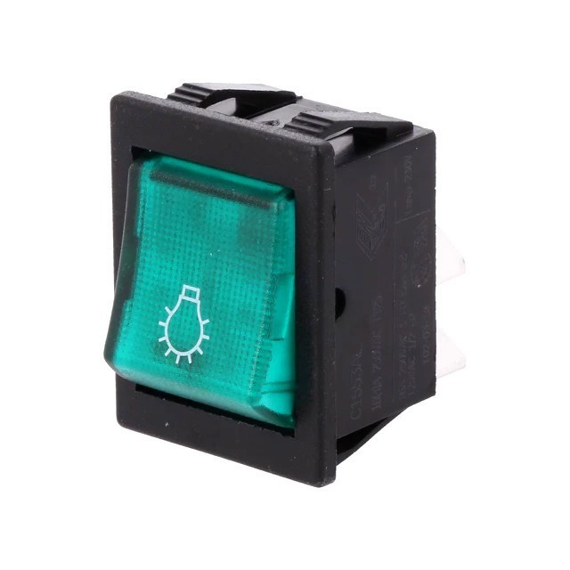 | AE-C1553ALBG3 Микропереключатель рокерный ROCKER, DPST, Поз: 2, ON-OFF, 16A/250ВAC, 20A/28VDC, зелений, 250В
