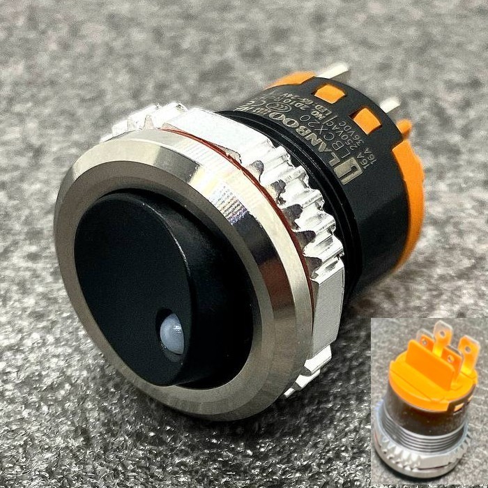 | CX20-Y222/R5-24V/S(L) Микропереключатель рокерный Тумблер металлический, 2NO2NC, клавиша Black, диаметр 20 мм, питание 5-24В, с фиксацией, цвет индикации: RED/красный