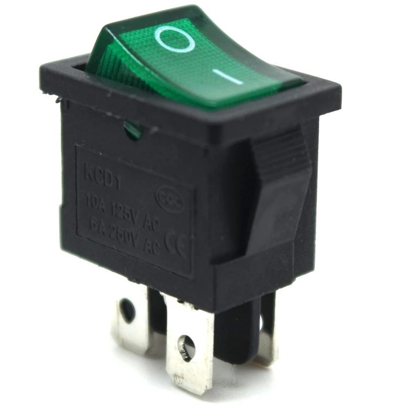 | KCD3 2 Position 3 Pin Green Микропереключатель рокерный Переключатель Rocker ON-OFF, зеленый, 16А/250В, 20А/125VAC, 3pin, SPST NO