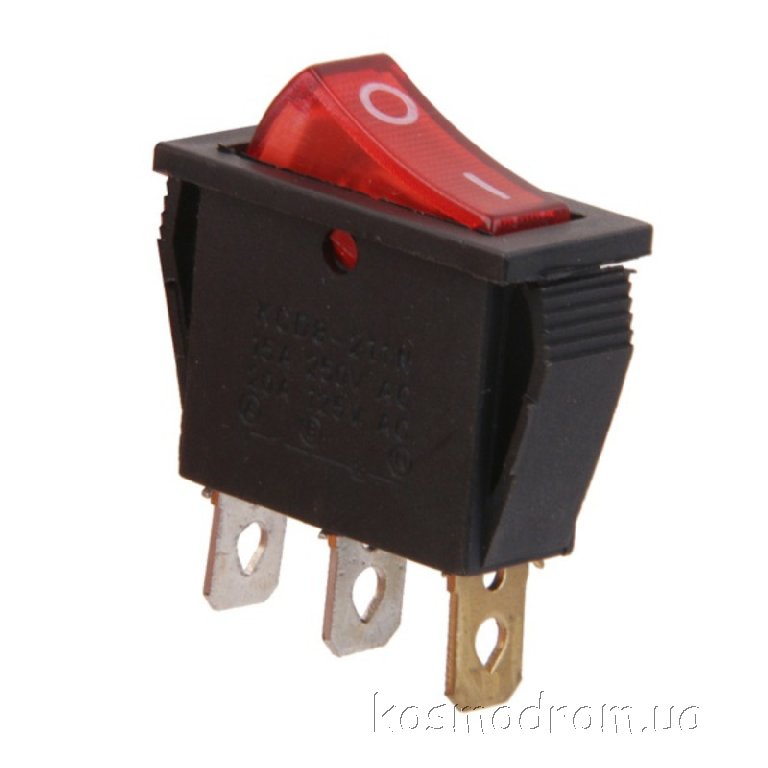 | KCD3 2 Position 3 Pin Red Микропереключатель рокерный Переключатель Rocker ON-OFF, красный, 16А/250В, 20А/125VAC, 3pin, SPST NO