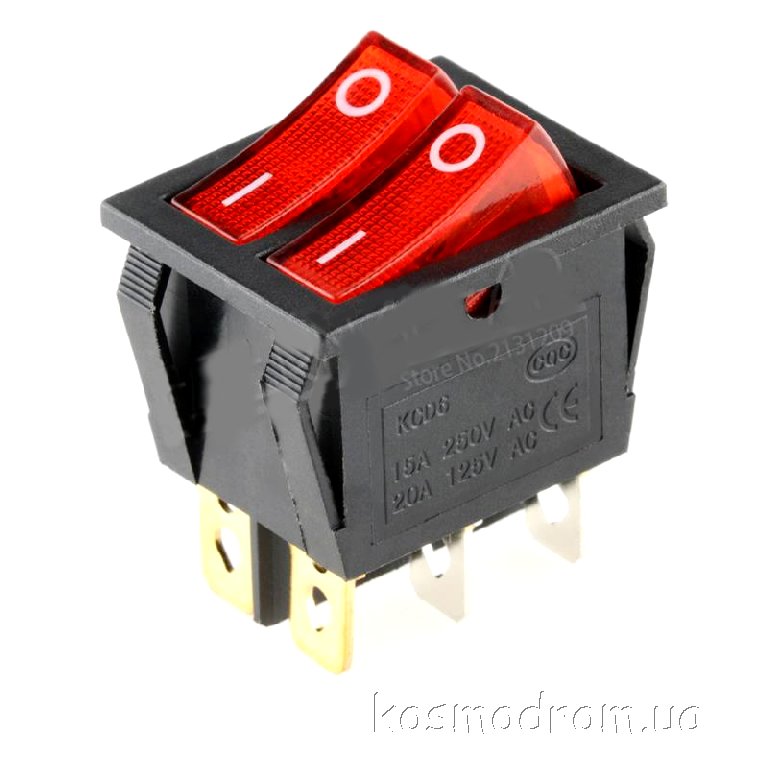 | KCD3 2 Position 6 Pin Red Микропереключатель рокерный Переключатель Rocker ON-OFF, красный, 16А/250В, 20А/125VAC, 6pin,SPST NO