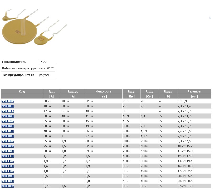 самовосстанавливающиеся предохранители