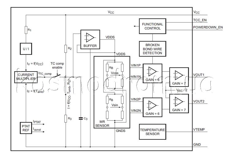 | KMZ60.115 Датчик положения магниторезистивный Рабочее напряжение питания, 2.7 V to 5.5 V. Ток питания, 6 mA. Максимальная рабочая температура, + 150 C