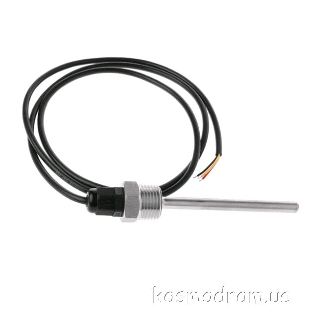 | DS18B20-BSP-G1/2-100mm Датчик температуры цифровой (термодатчик) Датчик (зонд) на базе DS18B20, Нержавеющая сталь, Длина кабеля 1 метр. Резьба G1/2. Длина гильзы - 100 мм