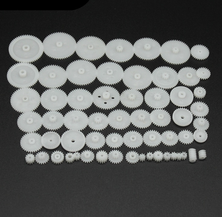 | Набір пластикових шестерень 58 шт Сервопривод Набор пластиковых шестеренок для робототехники. В набор входит 58 видов шестеренок