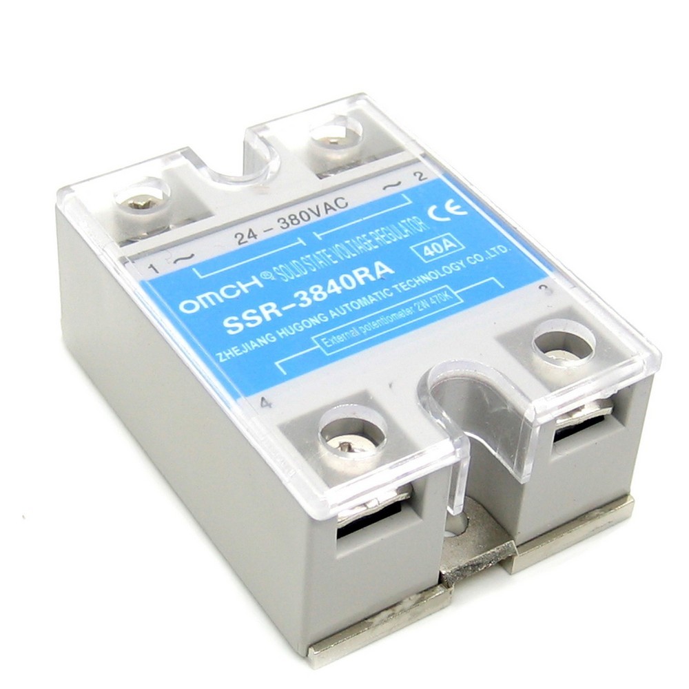 | SSR-3840UA Твердотельные реле Твердотельное реле переменного тока 40А / 24...380В. Управление переменным сопротивлением: переменный резистор: 250кОм/110В, 500кОм/220В, 1МОм/380В,Размеры: 60х45х22,5 мм