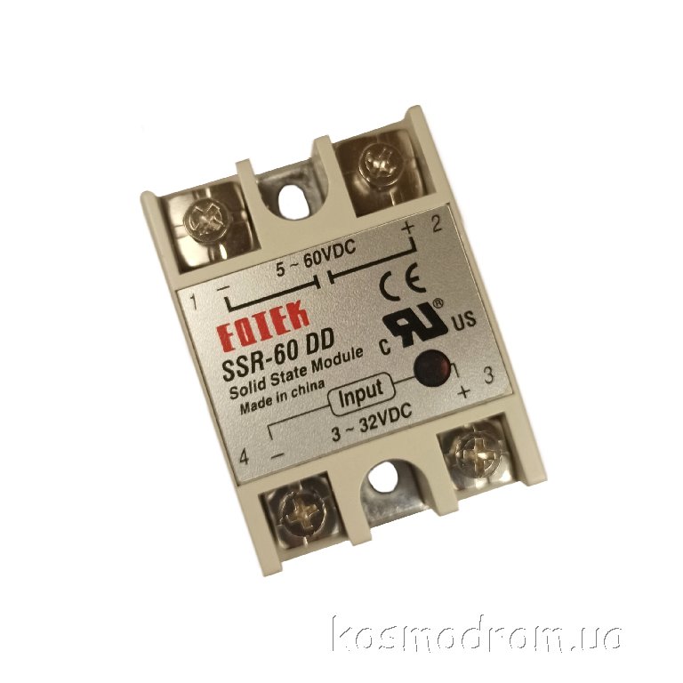 | SSR-60DD Твердотельные реле Однофазное, твердотельное, полупроводниковое реле с максимальным током нагрузки 60 А, управляющее напряжение 3-32 VDC, Напр. нагрузки: 5-60VDC. Размеры: 60х45х22,5 мм