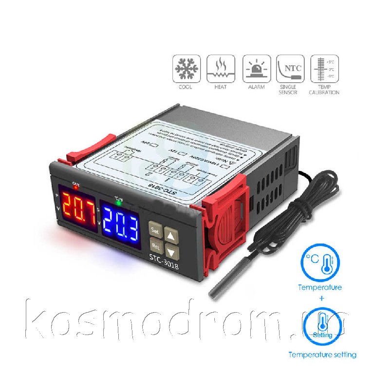 | STC-3018-12V Терморегулятор Цифровой терморегулятор с двумя дисплеями: 10 А. -55 °C ~ 120 °C/-66 °F ~ 248 °F/ пит: 12 VDC. Нагрев/охлаждение. В КОМПЛЕКТАЦИИ 1 ДАТЧИК