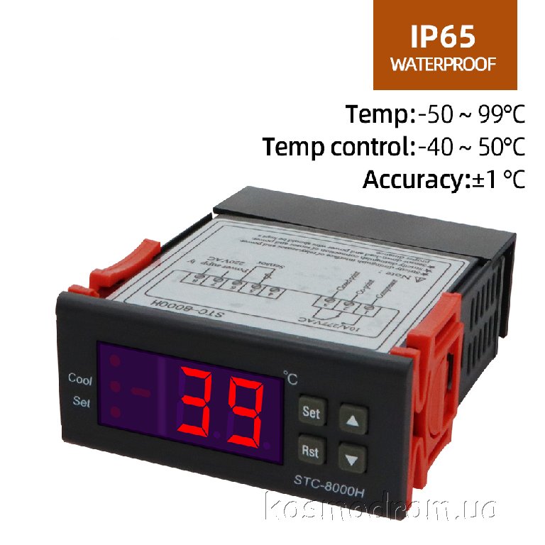 | STC-8000HAC Терморегулятор Цифроввой регулятор температуры. Температура: измеряемая -50°C...+99°C контроля -40°C...+50°C Режим: Охлаждение. Питание: 220 VAC Защита: IP65