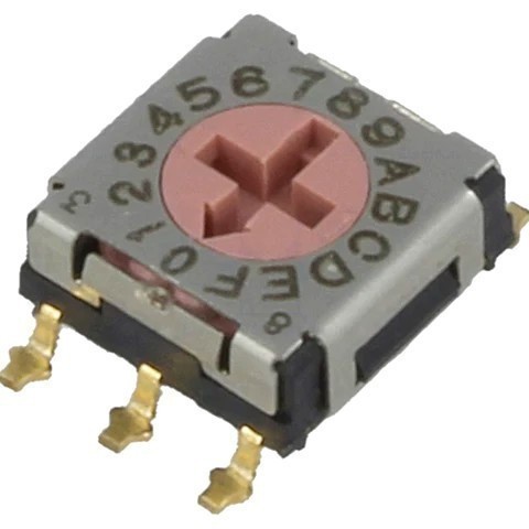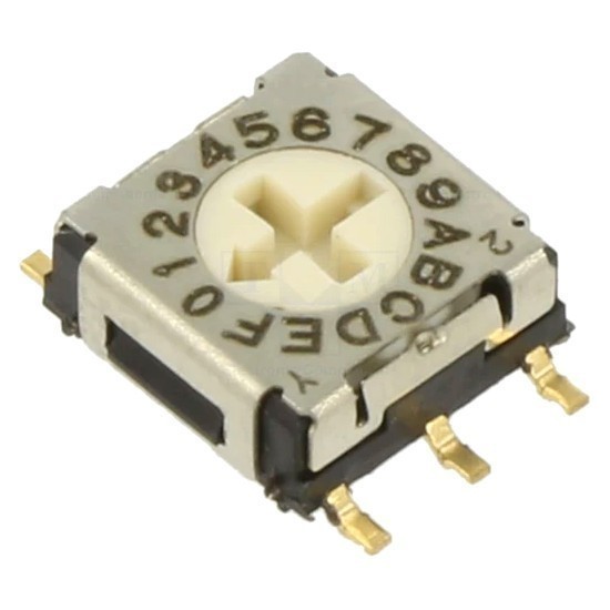 | ERD616RMZ-SMD Поворотный переключатель Кодирующий переключатель, HEX/BCD, Пол: 16, SMT, Шаг: 2,54мм, 5Нсм
