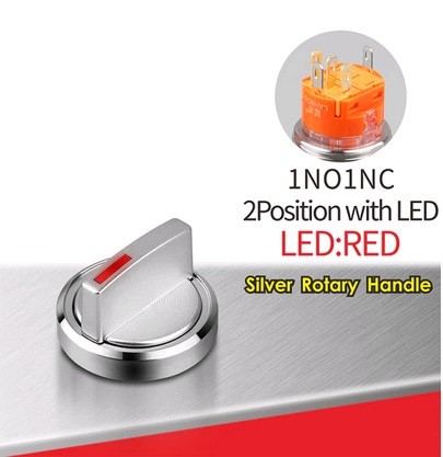 | LB19X5-X11Z-R5-24V Поворотный переключатель Переключатель, диаметр 19 мм, RED, питание 5-24В, 1NO1NC, цвет стальной