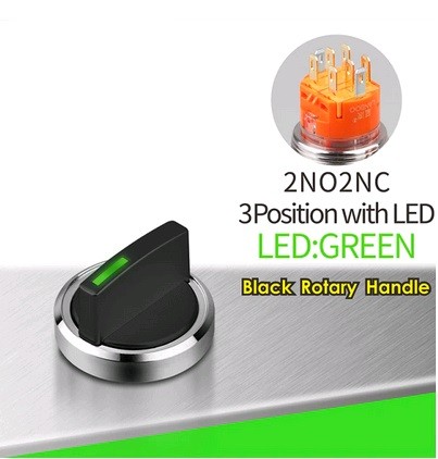 | LB19X5-X22Z-G5-24V-Black Поворотный переключатель Переключатель, диаметр 19 мм, GREEN, питание 5-24В, 2NO2NC, черный